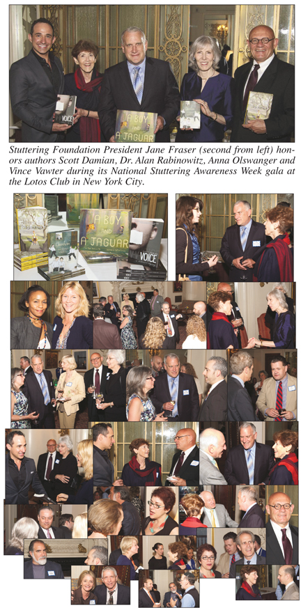 To celebrate National Stuttering Awareness Week, May 12-18, the Stuttering Foundation on May 13th honored four authors whose recent books are widely acclaimed by both critics and readers alike. In a reception at The Lotos Club, a gathering place for writers, journalists and critics since 1870, Foundation President Jane Fraser noted, “Authors with the courage to share their stories and inspire others hold a special place in the hearts of the 70 million people worldwide who struggle to speak.