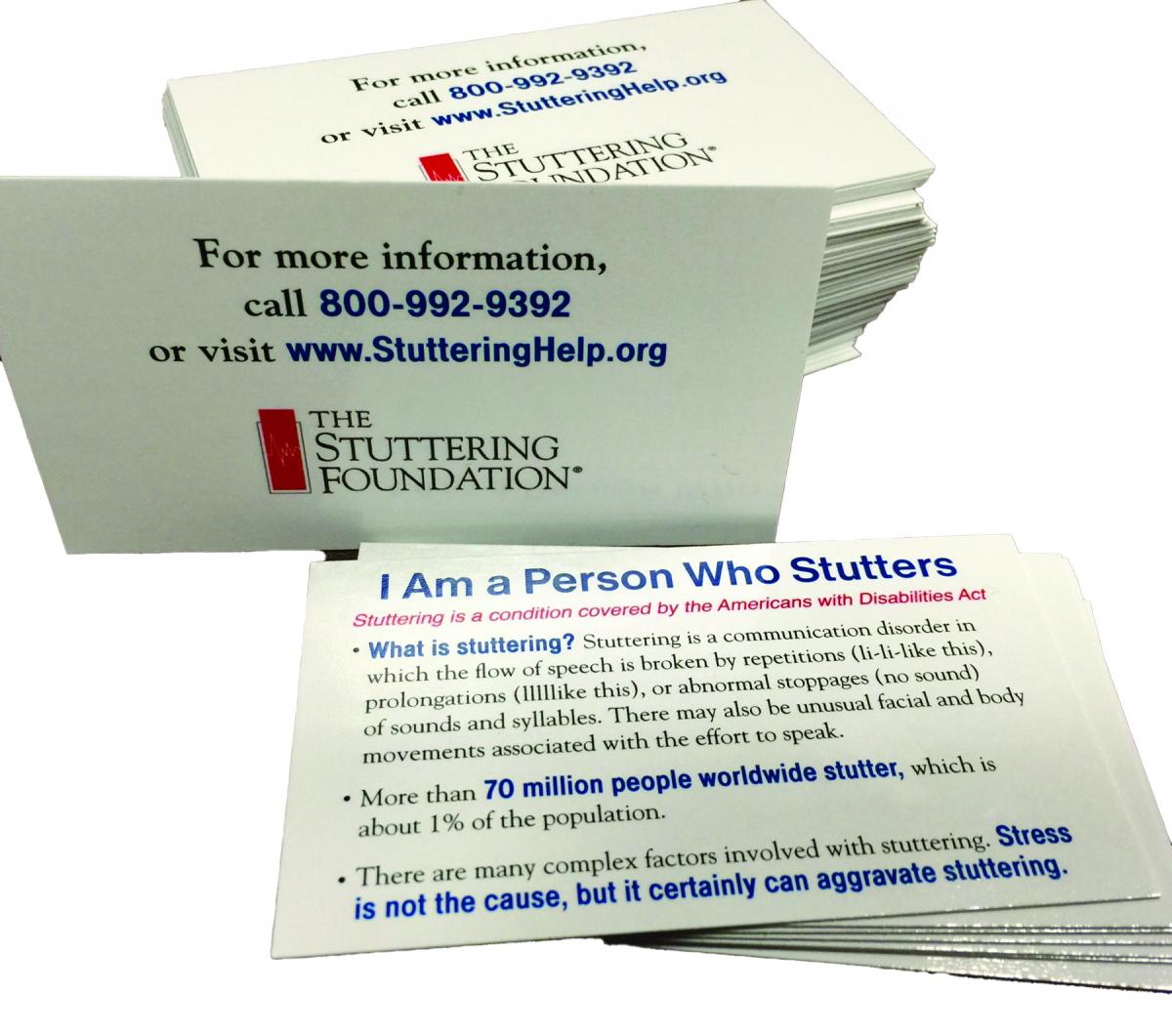 At the Stuttering Foundation, we are thankful for the efficacy of the “I Stutter Card” as well as efforts people who stutter have undertaken to use it to provide accurate information about stuttering and people who stutter. Borrowing a classic tagline from American Express from few decades ago, our recommendation is “Don’t leave home without it!”