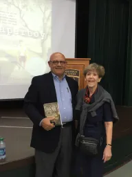 Stuttering Foundation President Jane Fraser had the honor of introducing author Vince Vawter for a presentation about his book Paperboy.